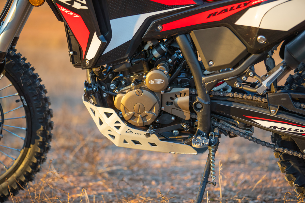 The sister Aventura Rally 307 R model has different graphics to distinguish it plus a full aluminium skid plate to protect vulnerable parts like the water pump, Michelin Tracker tyres. You also have options in the Rieju Power parts kit including upgraded exhaust system, upgraded suspension with Andreani fork cartridges and Ohlins shock, ride height reducing linkage, a “Power Kit” (we’re not sure of the details at time of writing) and handlebar risers.