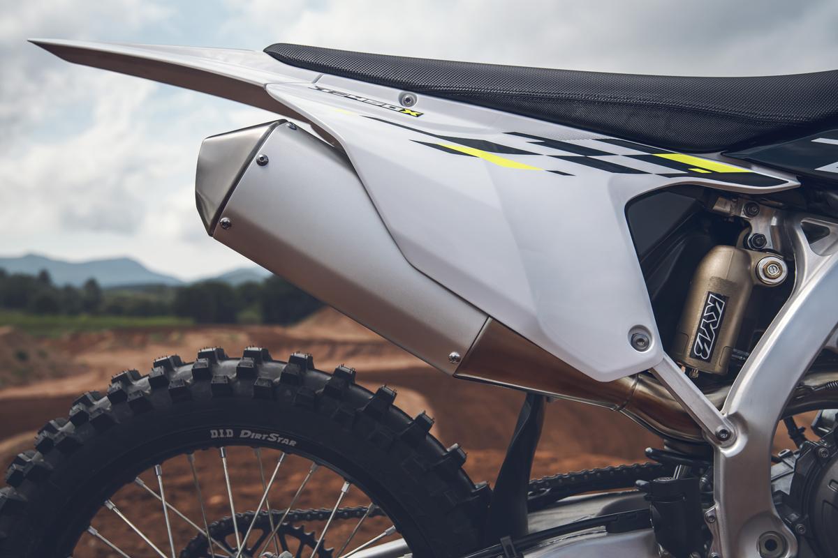 A Dell'Orto 44mm throttle body and Keihin injector are benchmark we would say plus the airbox and silencer, first seen on the TF 450- RC edition, claims it improves airflow and throttle response while meeting FIM and AMA race sound regulations.