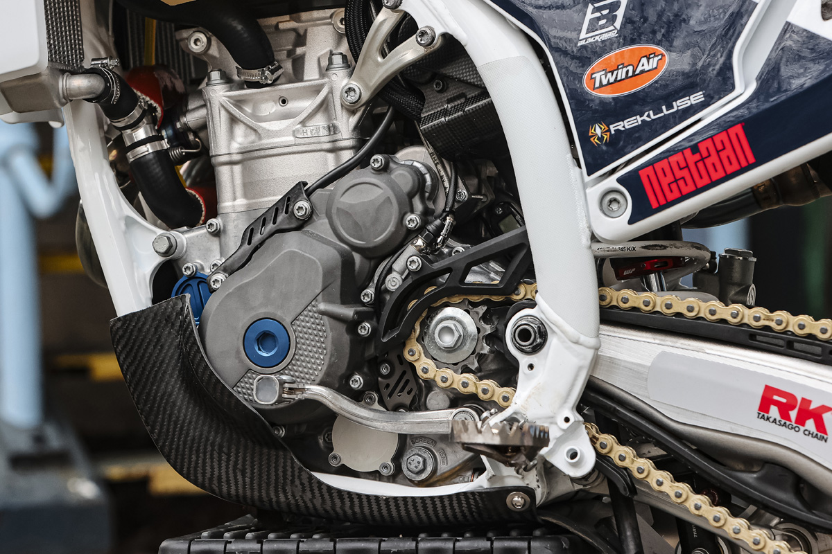 It is no different here, with the engine in Billy’s FE 350 SuperEnduro bike supplied from the factory just for him — “a Billy special”.