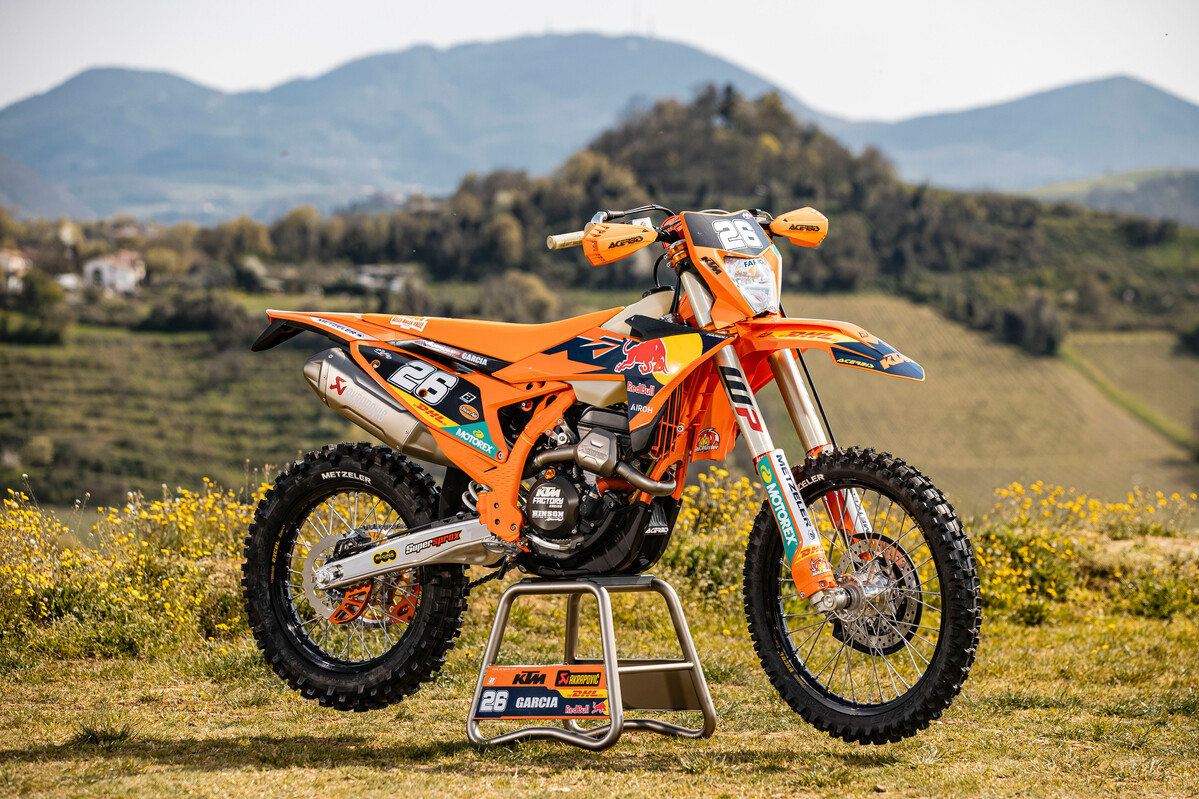First look at the 2026 Red Bull KTM Factory Racing team bikes and riders Josep Garcia and Andrea Verona, the numbers one and two in the FIM EnduroGP World Championship which explodes back into action this coming weekend in Custonaci, Sicily.
