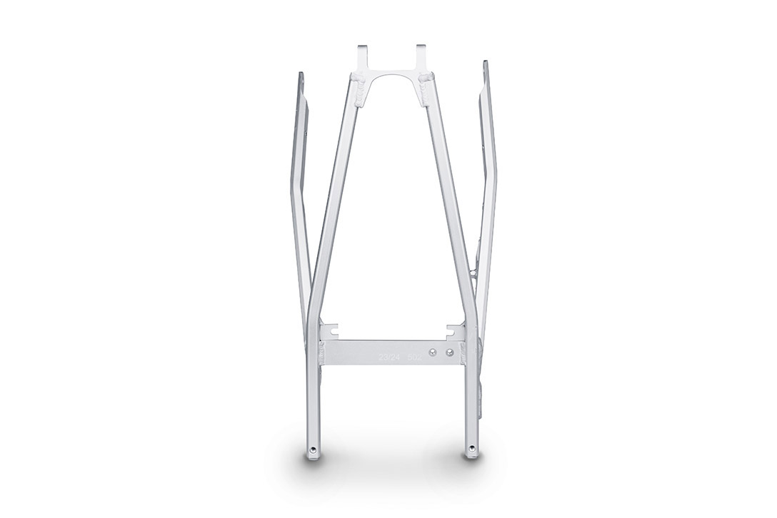 Aluminium subframes are common place on enduro and off-road bikes, strong enough yet lightweight, they hold exhausts, rear fenders and riders in place.