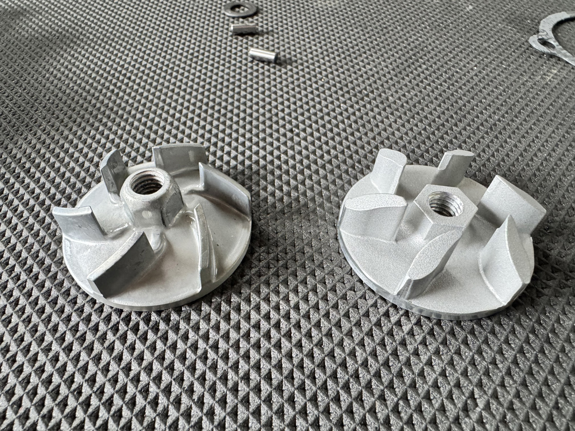 The Supercooler impeller looks similar to the stock part at first glance, but the inlet diameter, interior of the casing and the impeller design itself are all improved over the OEM components.