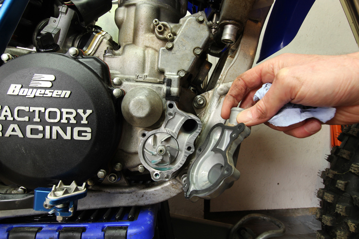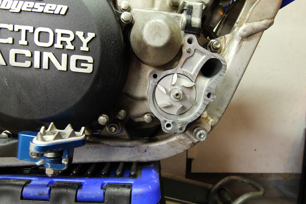 An impact driver on the impeller’s 12mm head (specific to the design on our Yamaha test bike) removed the original part, allowing the new impeller to be installed. Check your manufacturer’s torque settings when refitting.