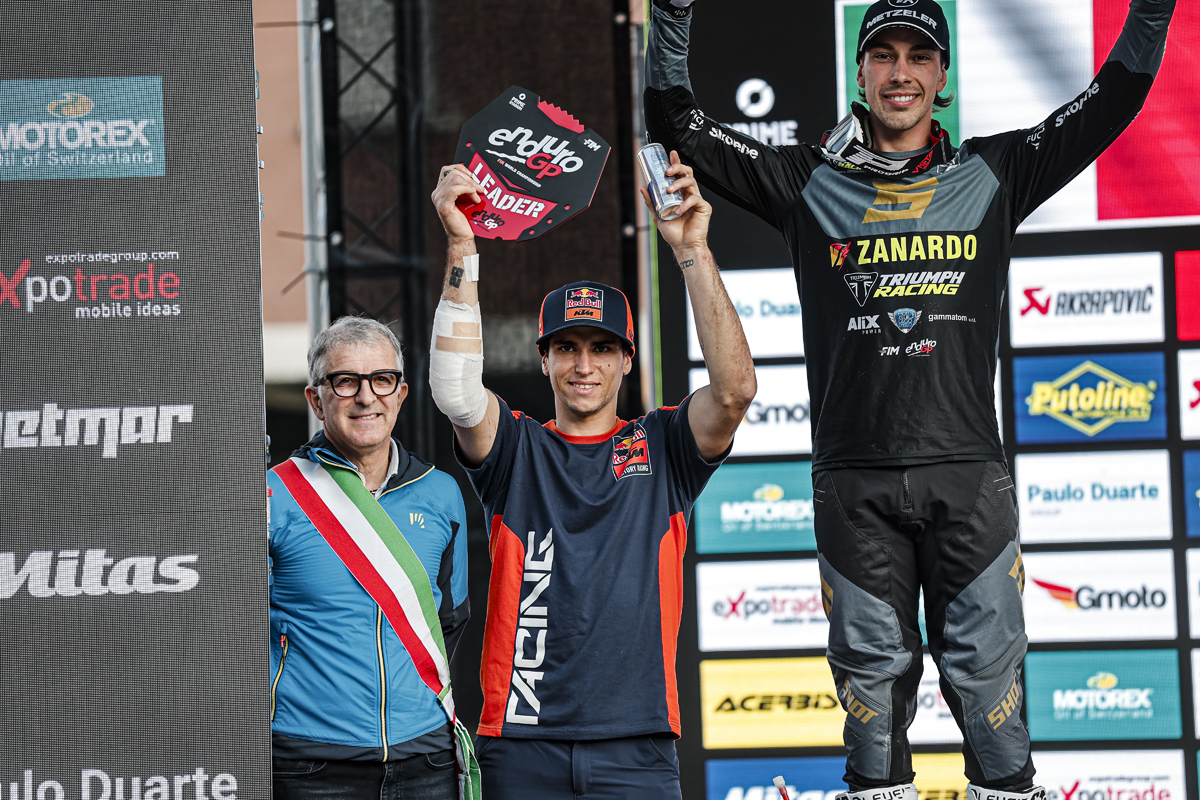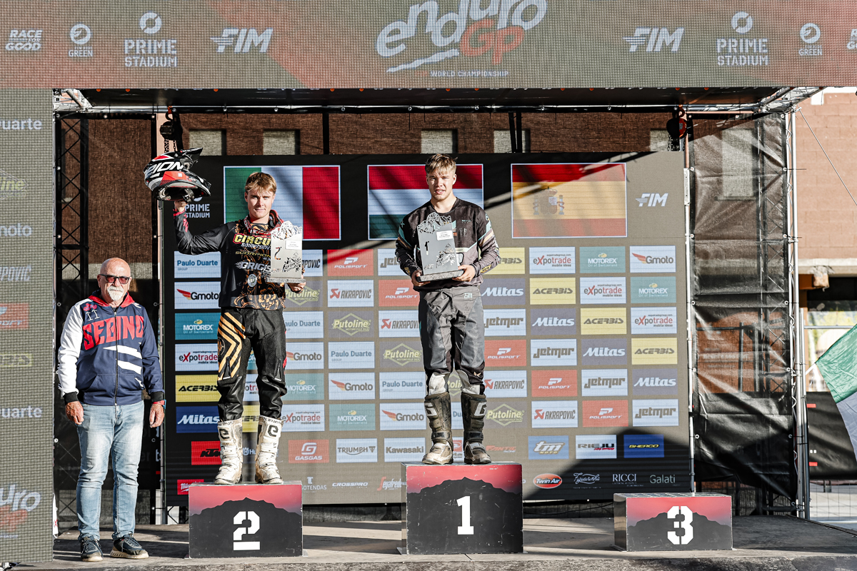The win swings Verona back on top of the E2 standings and into second overall in EnduroGP: “I’m really happy about today. Conditions were a bit better and I managed to ride without the mistakes. It was a good result to gain points in the E2 class and the overall, so we have one more round to go and I will train hard to arrive there as fast as possible.”