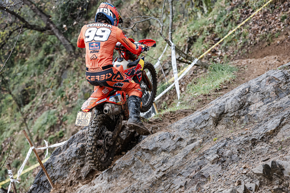 Among the riders with a bit of homework to do after this opening Italian race (there’s more than one) was the former world and Italian champion, Andrea Verona. Things looked good for the new Red Bull KTM rider, who’s switched to formally be parked alongside Josep Garcia in the EnduroGP team.