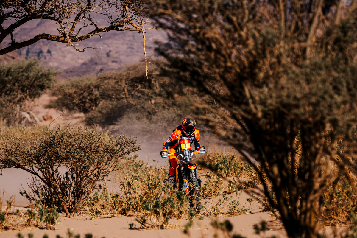 His Red Bull KTM teammate Daniel Sanders also couldn’t find it and needed the third and fourth placed starters, Monster Energy Honda’s Ricky Brabec and Tosha Schareina, to join the game of hide and seek with this invisible waypoint. Imagine, the four leading riders in the Dakar all together like a happy family out geocaching and all this at the start of a four-hour stage.