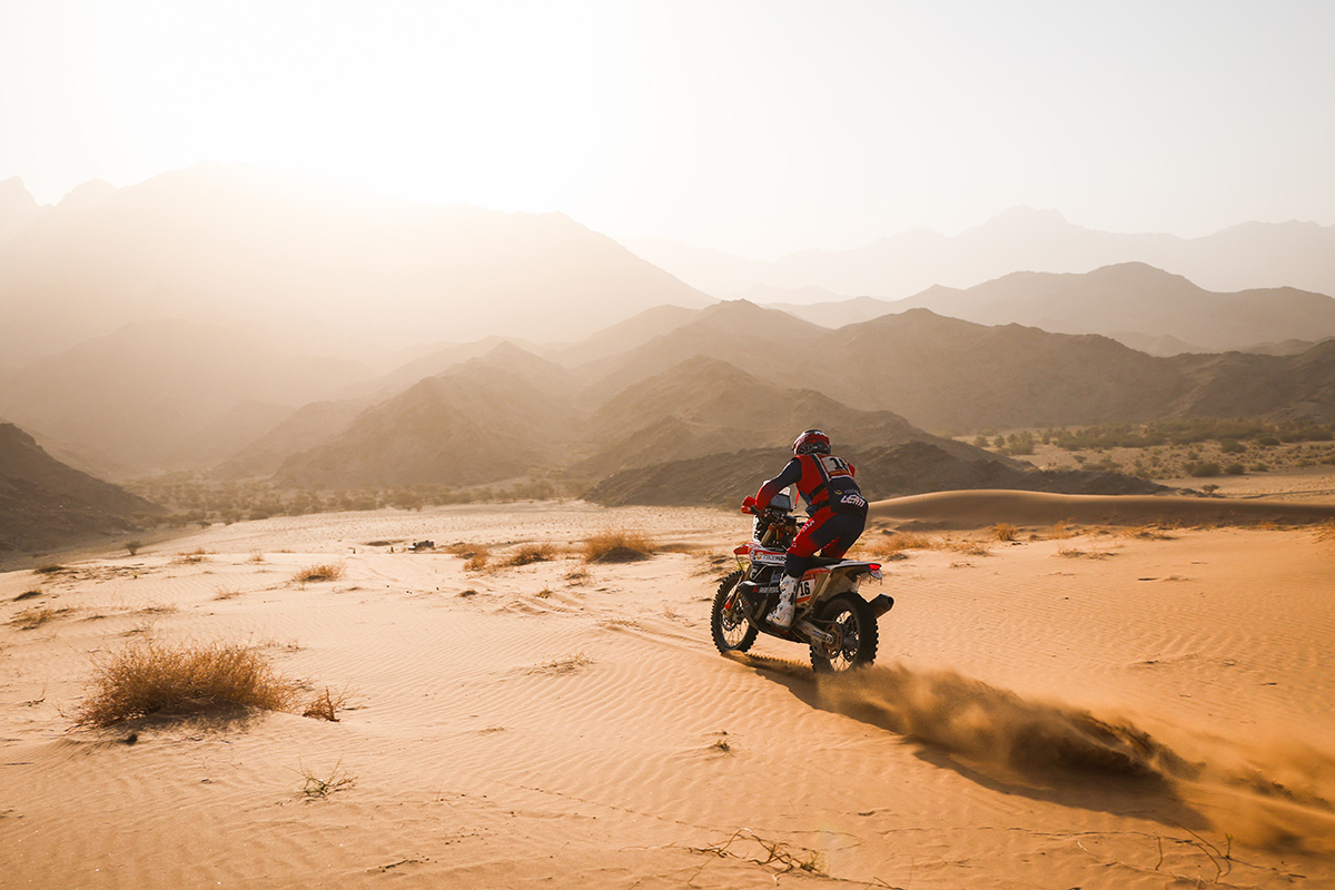 The two riders in it to win it started fourth and sixth today, meaning Luciano Benavides and Ricky Brabec both had lines in front to use as guides, hares to chase across the sand.