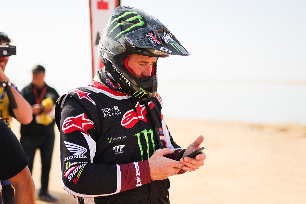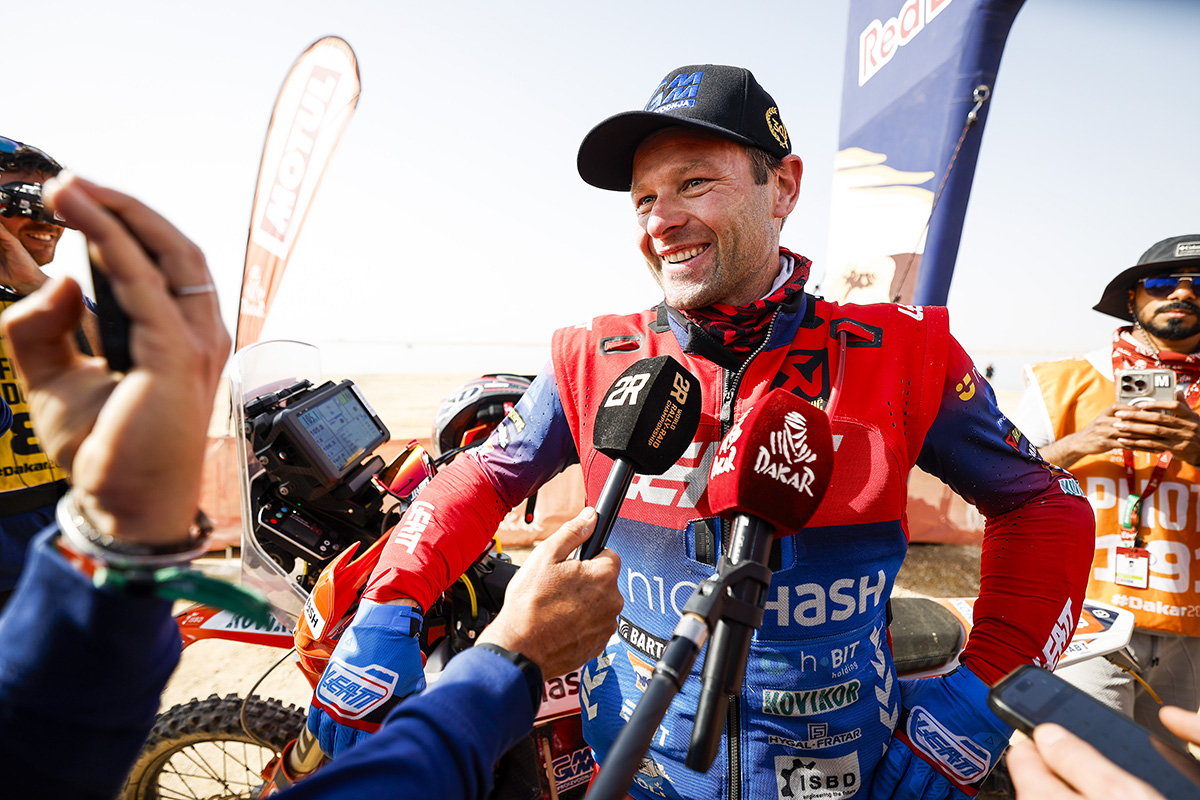 A third win for the American Ricky Brabec and for Honda was surely on the cards today. Once Daniel Sanders had crashed heavily and injured himself three stages ago, Brabec looked the most confident and calculated for the win. And it was all going to plan until that minor error seven kilometres from the flag.