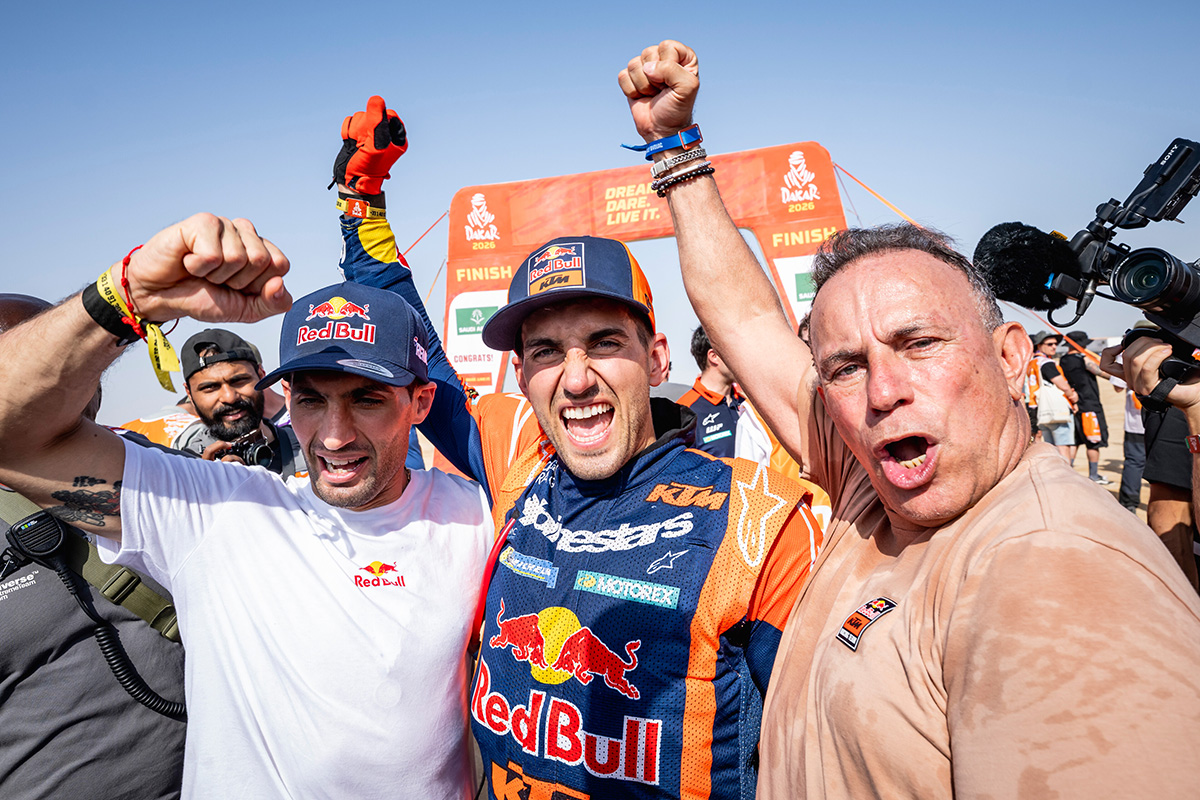 Red Bull KTM’s Luciano Benavides claims victory at the 2026 Dakar Rally by two seconds after mistake in the final kilometres by Monster Energy Honda’s Ricky Brabec.