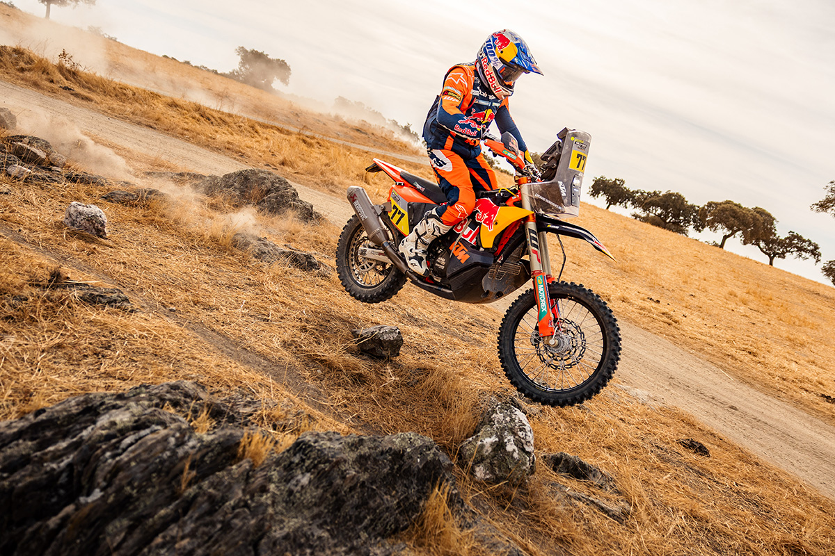 Una giro de última hora en los acontecimientos podría haber inclinado ya la balanza en la lucha entre Daniel Sanders (Red Bull KTM Factory Racing) y Tosha Schareina (Monster Energy Honda HRC), quien ayer lideró de forma fugaz la general de RallyGP al entrar en territorio español, pero hoy le ha devuelto el primer puesto al australiano tras cometer un error.