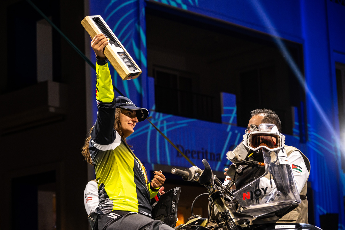 “Está guay ganar otra vez”, comentó McInnes en meta tras su segunda victoria de la temporada. “Lideré todo el día, pero al inicio de la especial cometí un error tonto que me costó la etapa. Abdulhalim me alcanzó y se quedó conmigo todo el día. El recorrido era realmente precioso, a pesar de los últimos 20 kilómetros muy pedregosos. Gané en Ha’il, gano aquí y me voy a Portugal en abril para seguir con la Copa del Mundo FIM de Bajas”.