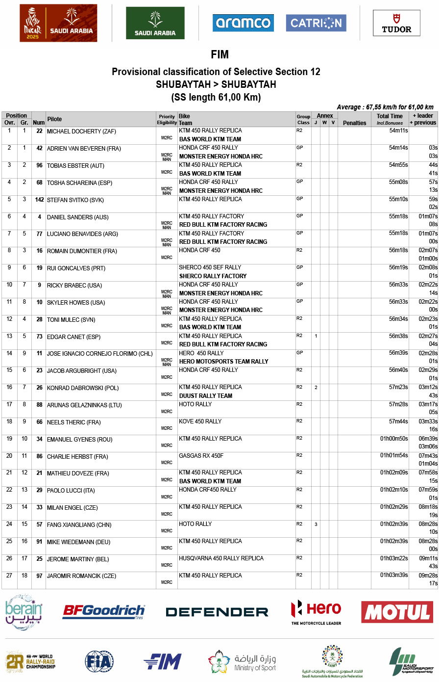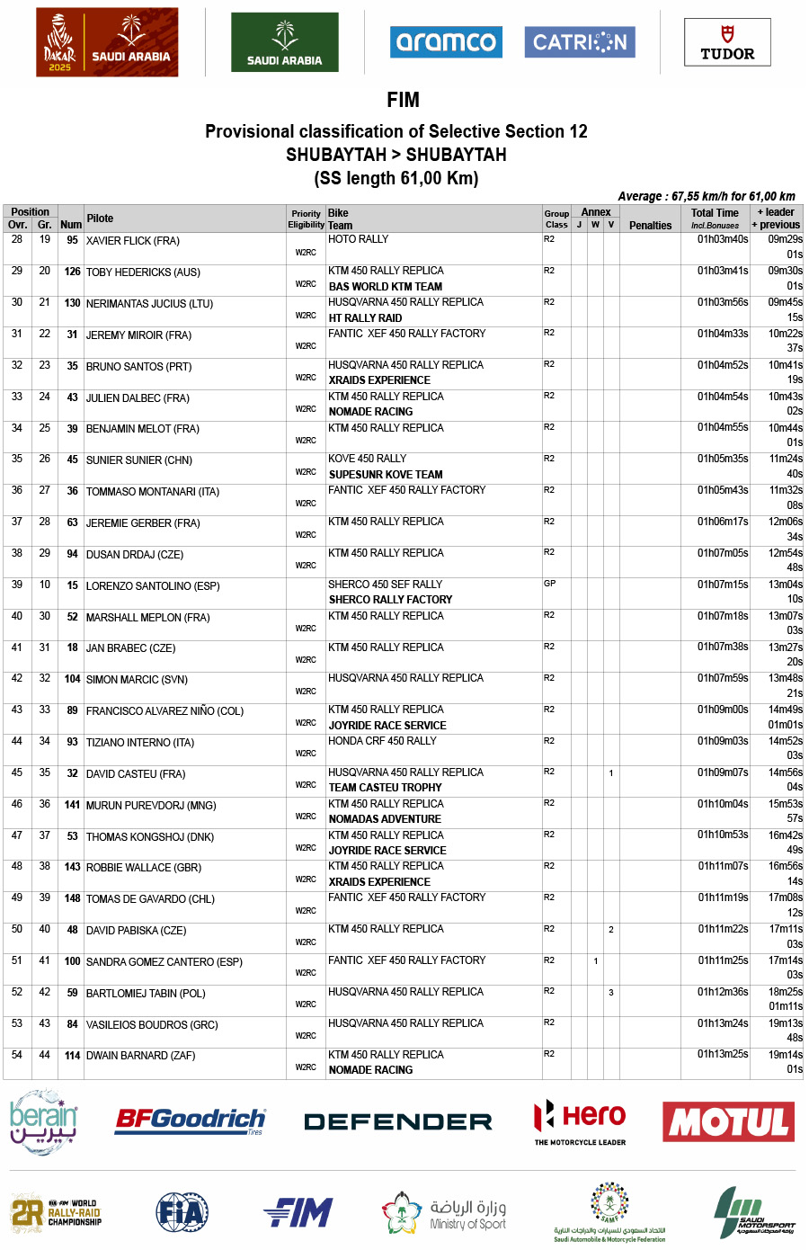 Clasificación provisional del Rally Dakar 2025 tras la etapa 12: