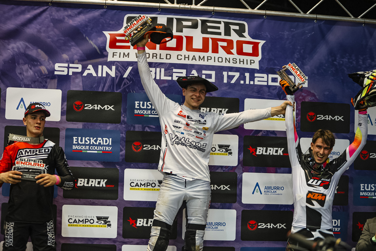 El público de Bilbao se vino arriba con Àlex Puey en la primera manga de la categoría Junior. El piloto español protagonizó un intenso intercambio de posiciones con Milan Schmuser y Toby Shaw, en una manga vibrante. Sin embargo, el líder del campeonato, Schmuser, supo jugar sus cartas y aprovechar los errores de Puey para llevarse la victoria, con Shaw completando el top 3.