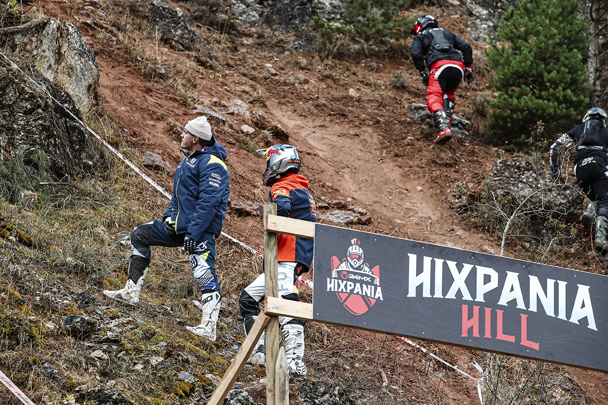 Como no se atendieron sus peticiones para hacerlo menos trialero – entre ellas que “se vería fatal si solo empujamos las motos” – los pilotos decidieron colectivamente detenerse al cruzar el arco de 24MX, justo antes del inicio de la Hixpania Hill. Billy llegó primero, con unos 20 segundos sobre Mani y con Román tercero, a unos 15 minutos.